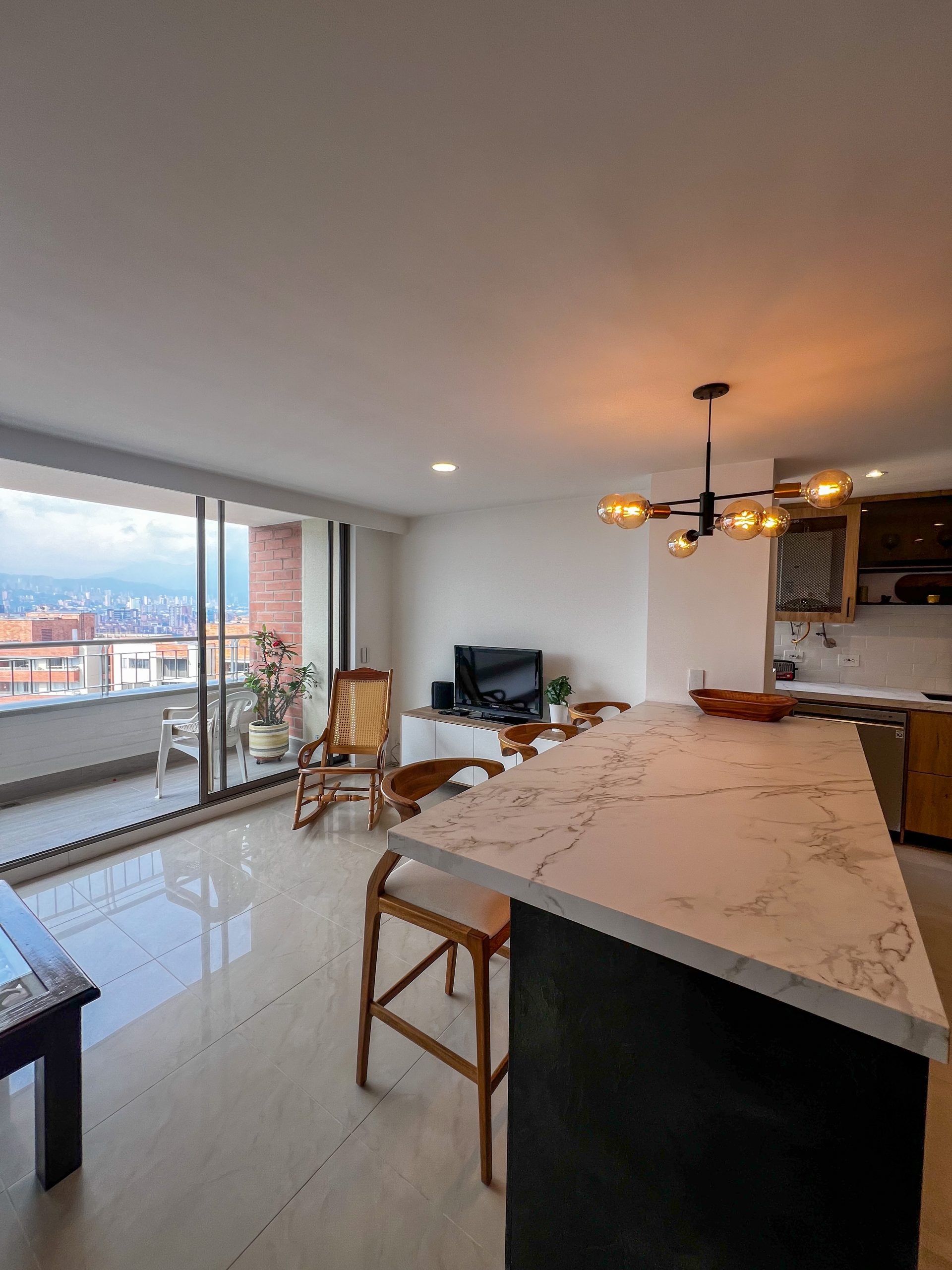 Apartamento amoblado de lujo con 115 m², diseñado para quienes valoran amplitud, diseño y confort. Cuenta con cocina abierta de alto nivel, muy bien dotada, zona de ropas independiente, sala y comedor integrados con excelente iluminación natural y dos balcones con vista que amplían los espacios y conectan el interior con el entorno. Dispone de 3 habitaciones, la principal con baño privado, vestier y balcón, además de baño social y parqueadero. Ubicado en Santamaría de los Ángeles, en El Poblado, un sector residencial exclusivo y tranquilo, con fácil acceso a vías principales, comercio y servicios, ideal para vivir con privacidad y comodidad en una de las zonas más consolidadas y apetecidas del sector.